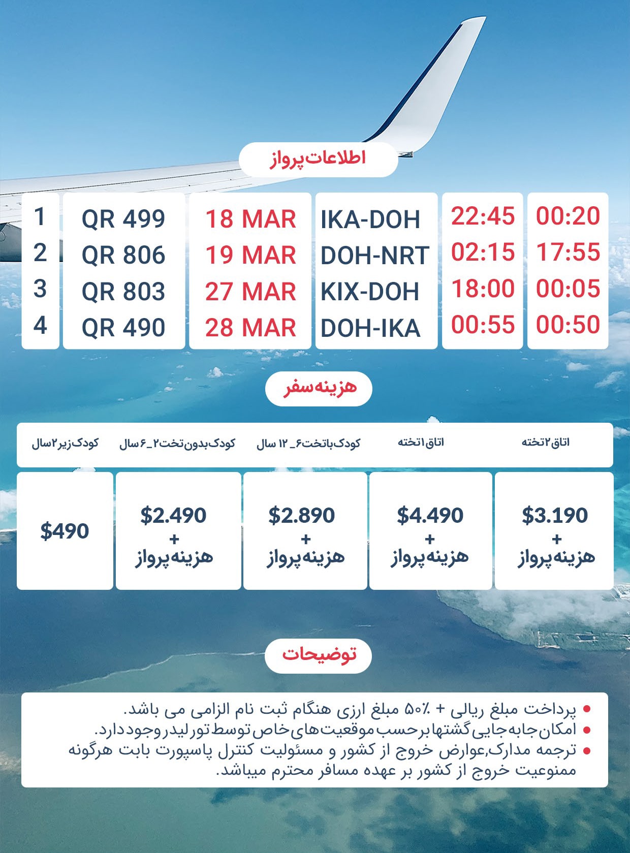 3.190 دلار + نرخ پرواز